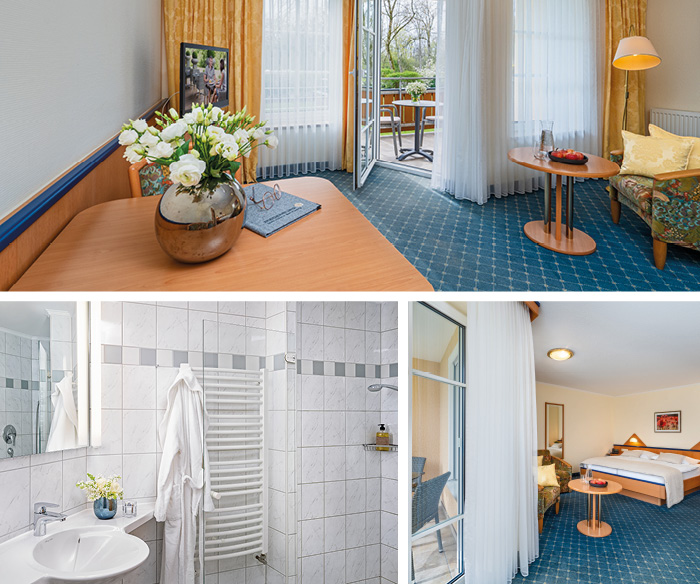 Hochwertig ausgestattet bieten Ihnen unsere freundlichen Doppelzimmer Lebensquell alle Annehmlichkeiten für einen erholsamen Urlaub. Eine bodengleiche Dusche sorgt im geräumigen Badezimmer für Barrierefreiheit.