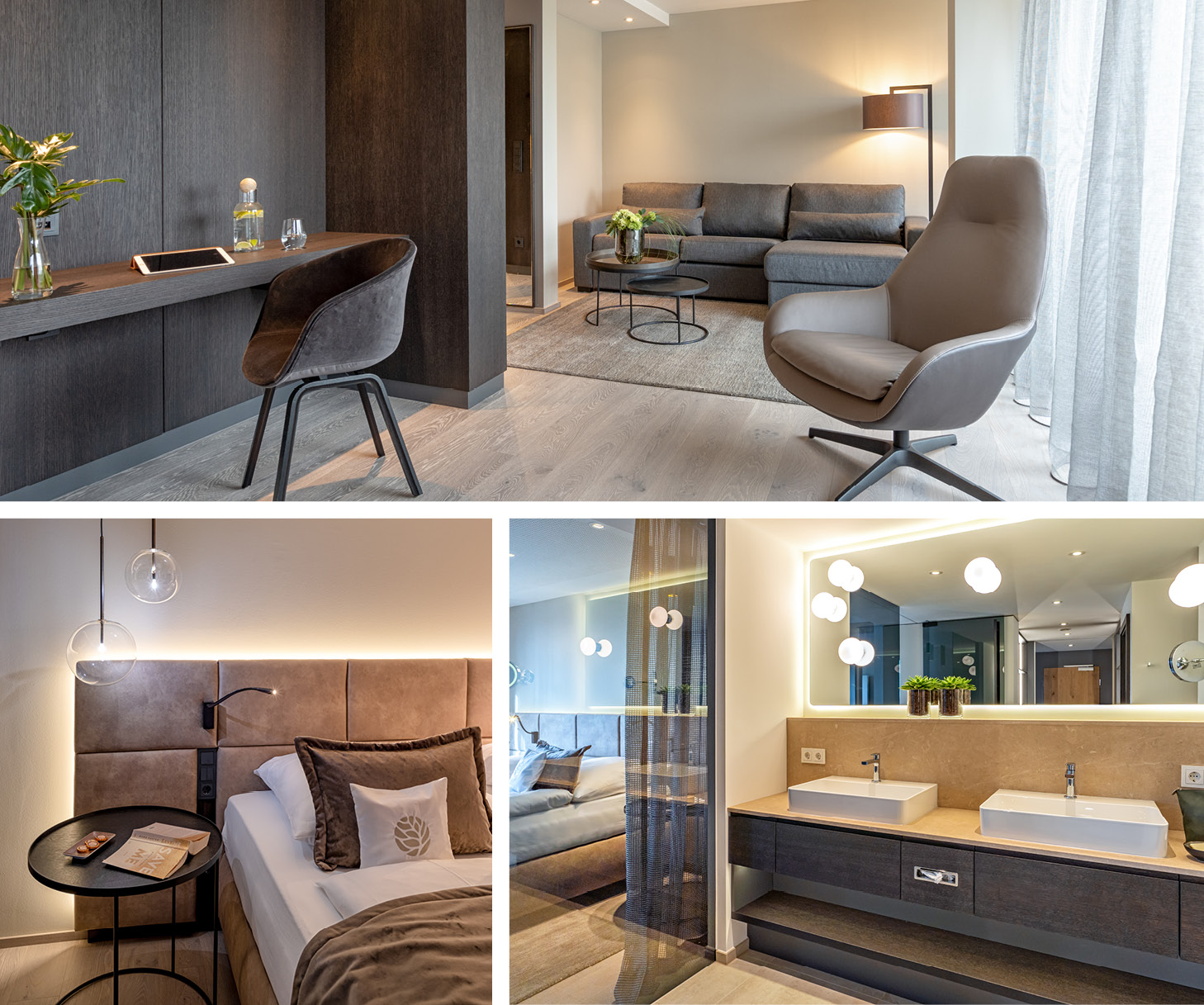 Mit viel Liebe zum Detail gestaltet, versprechen unsere neuen Zimmer eine einzigartige Wohlfühlatmosphäre. Lichtdurchflutete Räume, stilvolles Design, exklusive Ausstattung mit hochwertigen Boxspringbetten, vollautomatisch regulierender Klimatisierung und einer kleinen Teeküche mit Kühlschrank ... die Nespresso-Maschine garantiert exklusiven Gaumengenuss.